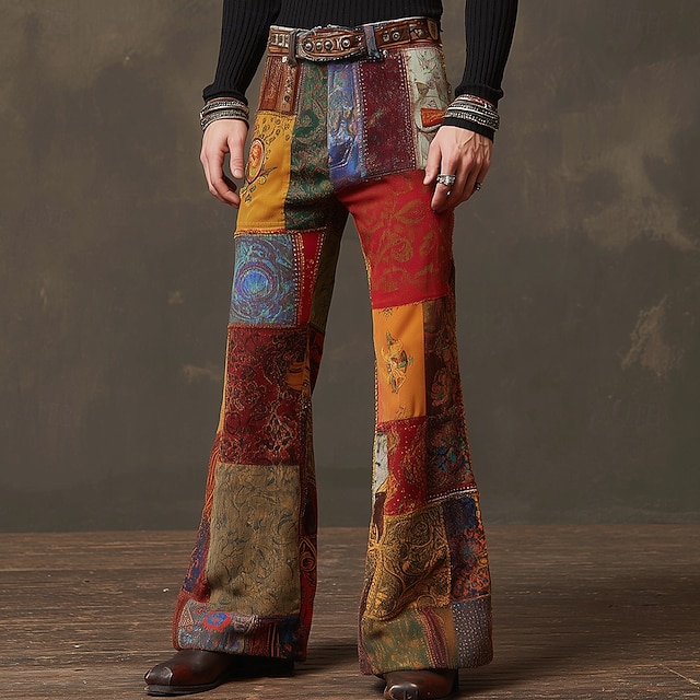 Ανδρικά Γεωμετρικό Συνδυασμός Χρωμάτων Κουρελού Παντελόνια Ντίσκο Παντελόνι Παντελόνια καμπάνα της δεκαετίας του '60 και του '70 Μεσαία Μέση Μποέμ Vintage ρετρό ΕΞΩΤΕΡΙΚΟΥ ΧΩΡΟΥ Πάρτι Causal #17259928