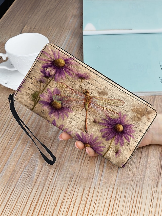 Γυναικείο πορτοφόλι από τεχνητό δέρμα, με πολλαπλά σχέδια λιβελούλας, μεγάλη χωρητικότητα με πολλαπλές θήκες, ιδανικό για καθημερινή χρήση, διακοπές και ταξίδια#17399063