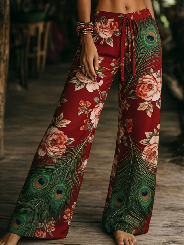 Γυναικεία Πλατύ Πόδι Παντελόνια Διακοπές Μοντέρνα Μπόχο Πλήρες μήκος Μεσαία Μέση Φλοράλ Τσέπη Ελαστική μέση Στάμπα Άνετα Ικανότητα να αναπνέει Ανελαστικό Καθημερινά ΕΞΩΤΕΡΙΚΟΥ ΧΩΡΟΥ Διακοπές Ρουμπίνι #17732728