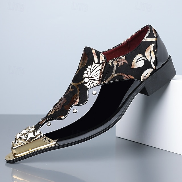Ανδρικά πολυτελή μαύρα μοκασίνια με φλοράλ σχέδια – κομψά παπούτσια για ειδικές περιστάσεις και βραδινά ρούχα #17865478