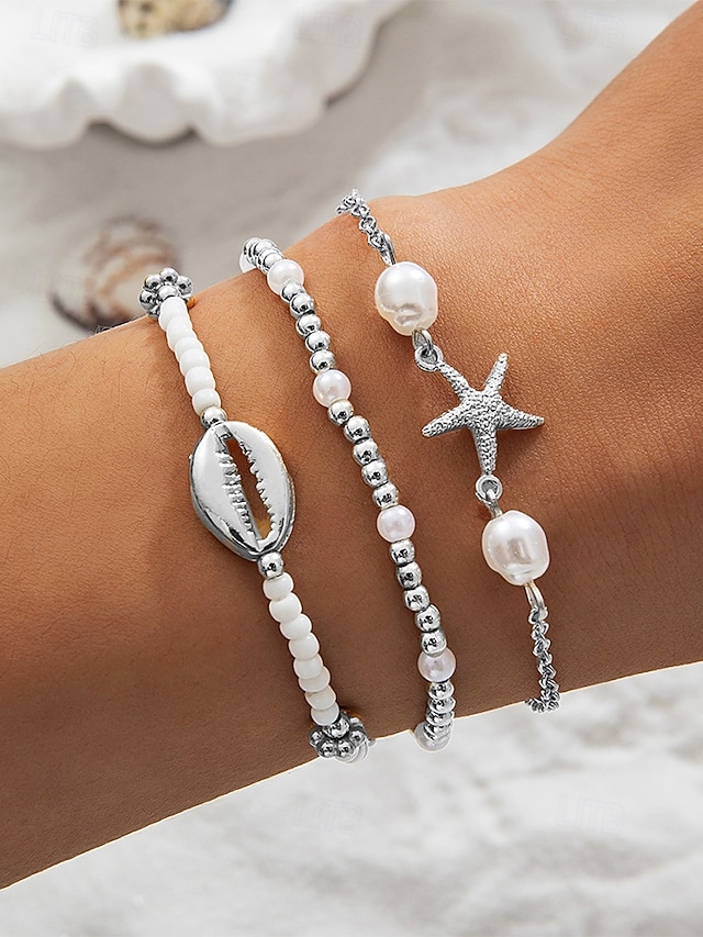 Σετ γυναικείων ελαστικών βραχιολιών μποέμ στυλ, 3 τεμάχια, υλικό κράματος αλουμινίου, χρώματα χρυσού & ασημί, ρυθμιζόμενη εφαρμογή, ιδανικό για διακοπές στην παραλία, casual καθημερινή χρήση #18247890