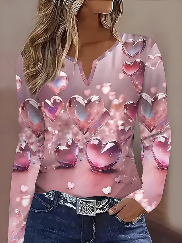 Γυναικεία Μπλουζάκι Στάμπα Καρδιά Γραφική Βίντατζ Στυλάτο Κλασσικό Μακρυμάνικο Λαιμόκοψη V Λαιμός με εγκοπή Κανονικά μπλουζάκια Καθημερινά Θαλασσί Ανθισμένο Ροζ Βυσσινί Καλοκαίρι Άνοιξη Φθινόπωρο #18576935