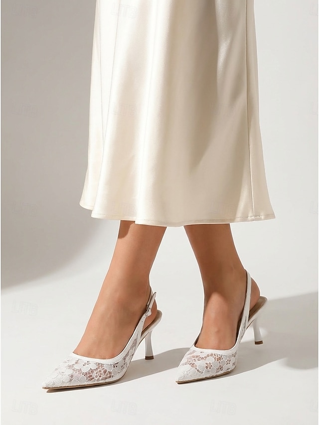 Γυναικεία Γάμος στον κήπο Γάμου Κοντόχοντρο Τακούνι Τακούνι Στιλέτο Μυτερή Μύτη Κομψό Δαντέλα Μοκασίνια Λευκό #18623127