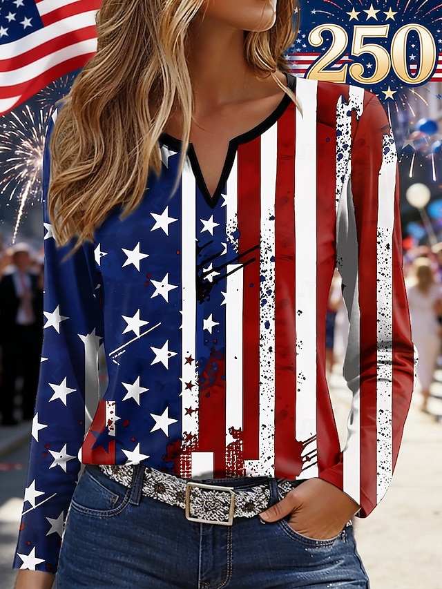 Ημέρα Ανεξαρτησίας Αμερικανική Επέτειος Πατριωτική Γυναικεία T-Shirt Γραφικό Σημαία Vintage Στυλάτο Σύγχρονο Μακρύς Μανίκι Σημείο Ρυθμισμένα Κορυφαία Καθημερινή Εκτύπωση Σαφή Μπλε Μαύρο Κόκκινο #18671792