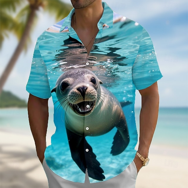 Ανδρικά Ζώο Ιπποπόταμος Σφραγίδα Χαβανέζικο πουκάμισο Πουκάμισο με κουμπιά Πουκάμισο Aloha Κοντομάνικο Αστείος Διακοπές Ρούχα παραλίας Καλοκαίρι Άνοιξη Απορρίπτω 3D εκτύπωση γιακά πουκάμισα #18780080