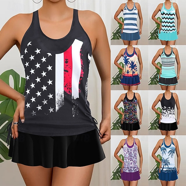 Γυναικείο Μαγιό Ταγκίνι 2 Τεμαχίων Φούστα Έλεγχος Κοιλιάς Ψηλός Ορθοστάτης Σλιμ Ανοιχτή Πλάτη Διακοπές Παραλία Φορέματα Σημαία Ράσβερ U Λαιμός Αμάνικο #18783657