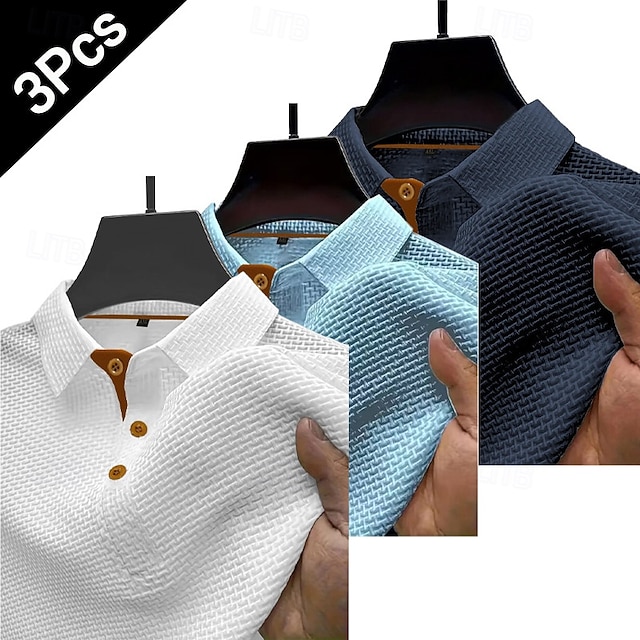 Πολλαπλές συσκευασίες 3 τεμ Ανδρικά Πέτο Κοντομάνικο Λευκό / Μαύρο / Μπλε Button Up Polos Πουκάμισο γκολφ Μπλουζάκια Golf Polos Ζακάρ Σκέτο Διακοπές Καθημερινά Ρούχα Πολυεστέρας Καλοκαίρι #18838639