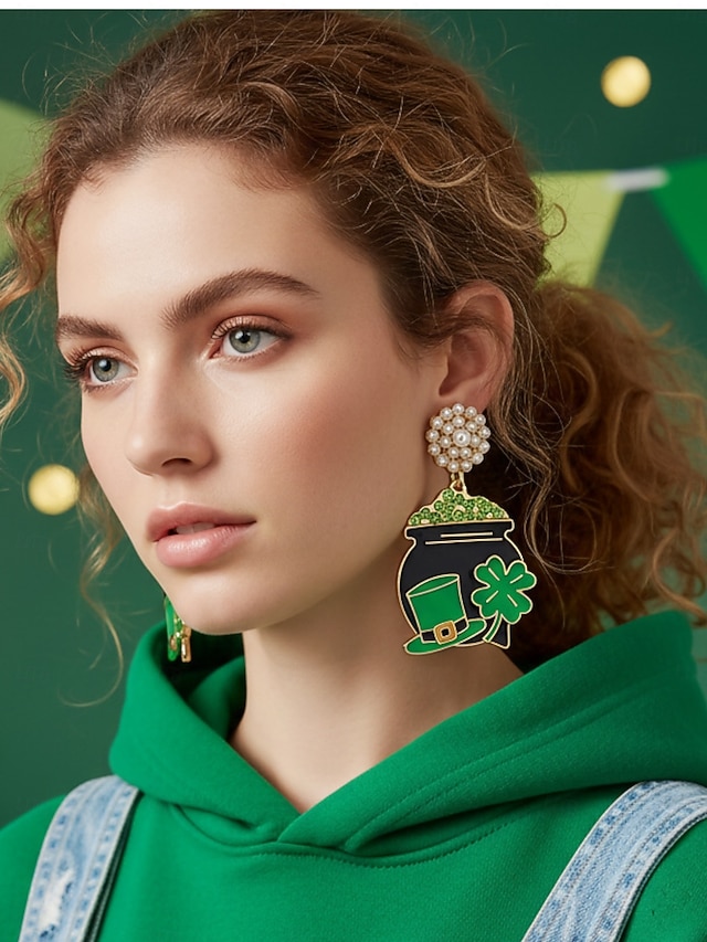 Γυναικεία σκουλαρίκια με πράσινο κρύσταλλο για την ημέρα του Αγίου Πατρικίου – τριφύλλι &Σχέδιο καπέλου ξωτικά, ιδανικό για το ιρλανδικό φεστιβάλ &εορτασμοί για την ημέρα του Αγίου Πατρικίου #19211463