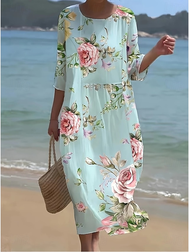 Γυναικείο Μακρύ Φόρεμα Λινάρι Τόσο Αναπνεύσιμη Ελαφριά Σαλοπέτα Άμεσου Στυλ Καλοκαιρινό Φόρεμα Διακοπών Καθημερινό Μποχό Παραλία Διακοπές 3/4 Μανίκι Λαιμός Φαρέτρα #19529646