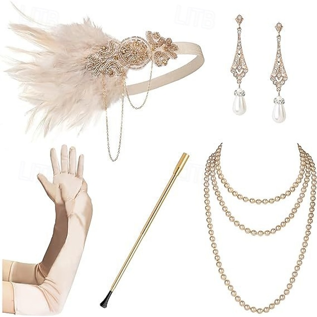 Δροσμός 20ετών 1920 Κορδέλα μαλλιών του 1920 Σετ αξεσουάρ Το Great Gatsby Τσάρλεστον Φτερό Φανταχτερή Φόρεμα Γυναικεία Νέος Χρόνος Μασκάρεμα Πάρτι Bachelorette Πάρτι Ενηλίκων Γάντια Σκουλαρίκια Κολιέ#19599889