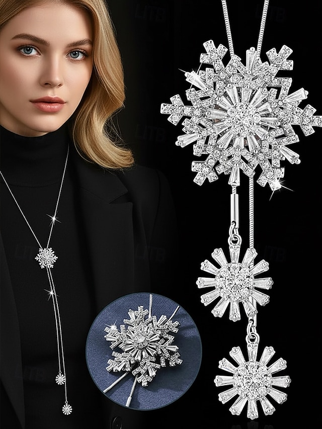 Γυναικείο κολιέ με κρεμαστό κόσμημα σε σχήμα χιονονιφάδας – κομψό κόσμημα με μακριά αλυσίδα και κρυστάλλινες λεπτομέρειες για κυρίες, χειμερινή μόδα και χριστουγεννιάτικο δώρο #19766227