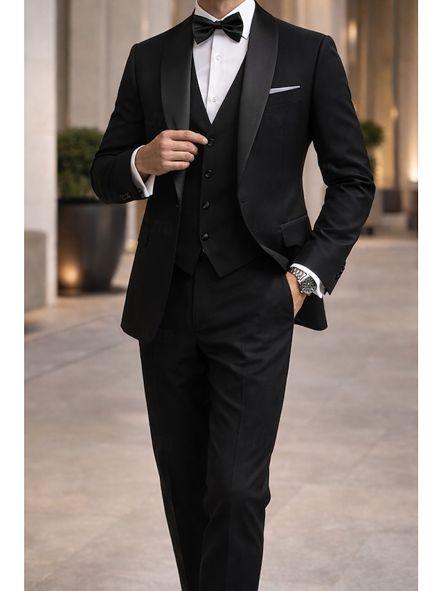 Ανδρικά Πάρτι Γάμου Σμόκιν Πάρτι Σκούρο γκρι Μαύρο Μονόχρωμο Τυπική εφαρμογή Σετ 3 τεμαχίων Μονόπετο Ενός Κουμπιού #8464098