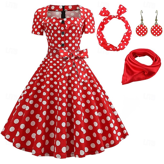 Πουά Ρετρό Vintage σαπούνια της δεκαετίας του 1950 A-Line φόρεμα Swing φόρεμα Φούσκα φίνος φόρεμα Γυναικείου Πάρτι βραδινό Ενηλίκων φόρεμα Σκουλαρίκια Κορδέλα#9555212