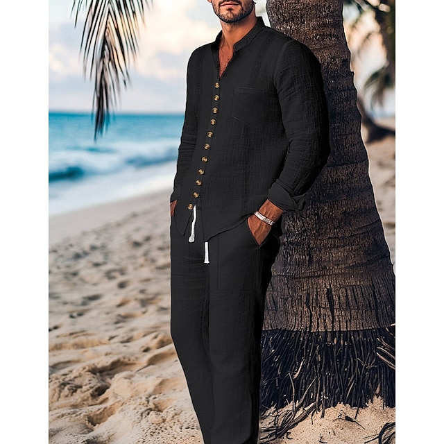 Ύφασμα:Βαμβάκι και λινό,Τύπος Μπλούζας:2 Κομμάτια,Πουκάμισο Guayabera,Casual πουκάμισο,Σετ πουκαμίσου,Ταίριασμα σετ,Φύλο:Ανδρικά,Περίσταση:Εξόδου,Διακοπές,Σχέδιο:Μπροστινή τσέπη,Στυλ:Καθημερινό,Μοντέρνα,Άνετο,Λαιμόκοψη:Όρθιος γιακάς,Μάκρος Μανικιού:Μακρύ Παντελόνι,Μακρυμάνικο,Φροντίδα:Υγρό και Στεγνό Καθάρισμα,Πλένεται,Μοτίβο:Σκέτο,Εποχή:Ανοιξη καλοκαίρι,Γοφούς (cm):Τ:103;M:108;L:113;XL:118;2XL:123,Μήκος [Κάτω] (cm):Τ:100;M:102;L:104;XL:106;2XL:108,Χρήση:Αναπνέει,Ύγρανση,