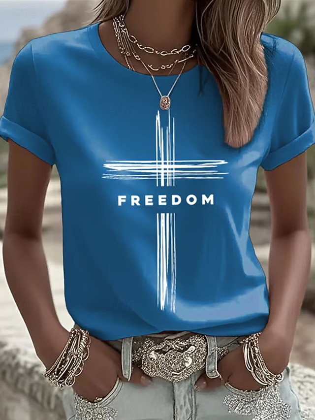 Ημέρα Ανεξαρτησίας Πατριωτική Γυναικών T Shirt Γραφικό Γράμμα Vintage Στυλάτη Κλασική Κοντομάνικη Crew Neck Κανονικά Τοπ Καθημερινής Χρήσης Σαββατοκύριακο Εκτύπωση Μπλε Μαύρο Λευκό Ροζ Κόκκινο #9950982