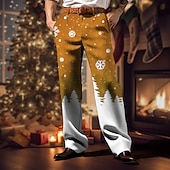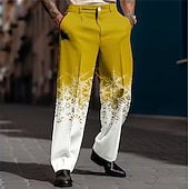 χριστουγεννιάτικο ανδρικό χριστουγεννιάτικο σκηνικό εμπριμέ παντελόνι νιφάδα χιονιού επαγγελματικό casual 3d print παντελόνι υπαίθριο φορούν στο δρόμο για δουλειά άσχημο κρασί από πολυεστέρα κίτρινο