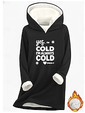 Γυναικείο φούτερ με κουκούλα πουλόβερ με επένδυση από φλίς Ζεστά πιτζάμες Ζεστά χνουδωτά κομμάτια Σέβερπα φλίς με επένδυση Γραφικό χαρτί Καθημερινής χρήσης Αθλητική εκτύπωση Μακρυμάνικο Μαύρο Σκούρο