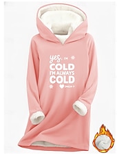 Γυναικεία Φούτερ πουλόβερ με κουκούλα και πουλόβερ Γραφική Γράμμα Ζεστό Καθημερινό Sherpa Fleece Μακρυμάνικο Με Κουκούλα Κανονικά μπλουζάκια Δρόμος Καθημερινή Ένδυση Causal Στάμπα
