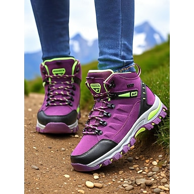 Γυναικείες αδιάβροχες μπότες πεζοπορίας – μωβ ψηλά παπούτσια για υπαίθριες διαδρομές με στήριξη στον αστράγαλο για πεζοπορία, κάμπινγκ και ορεινές περιπέτειες