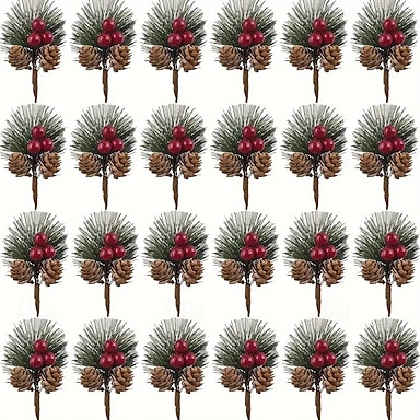 24 τεμάχια τεχνητά χριστουγεννιάτικα δέντρα – ψεύτικες βελόνες πεύκου, μίσχοι μούρων και κουκουνάρια για στεφάνια, χειροτεχνίες και διακοσμήσεις χριστουγεννιάτικων δέντρων