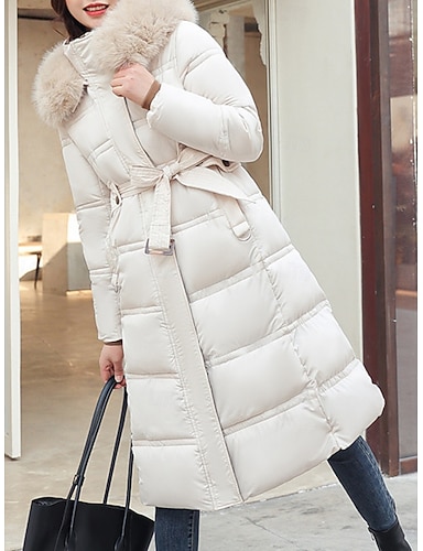 Γυναικεία Καπιτονέ μπουφάν Άνετο Αναπνέει Τσέπη Κουμπιά Γούνινος γιακάς Καθημερινό Σκέτο Διακοπές Δρόμος Causal Καθημερινά Ρούχα Μονόπετο Μακρύ Απορρίπτω Κανονικό Μακρυμάνικο Εξωτερικά ενδύματα