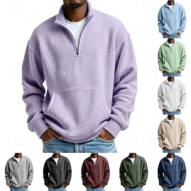 Ανδρικά Πουλόβερ Φούτερ με φερμουάρ Μαύρο Μισό φερμουάρ Συνδυασμός Χρωμάτων Αθλήματα & Ύπαιθρος Καθημερινά Αργίες Πολυεστέρας Βίντατζ Κομψό στυλ street Καθημερινό Άνοιξη & Χειμώνας Ρούχα Φούτερ Φούτερ