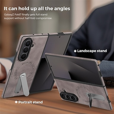 τηλέφωνο tok Για Samsung Galaxy Z Fold 7 Z Διπλώστε 6 Z Fold 5 Z Fold 4 Πίσω Κάλυμμα Θήκη μαγνητικής προσρόφησης με βάση στήριξης Μαγνητική Υποστήριξη ασύρματης φόρτισης Ρετρό PC PU δέρμα