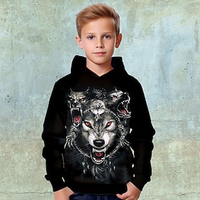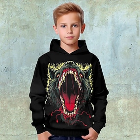 בנים תלת מימד גראפי חיה דינוזאור קפוצ'ון Pullover שרוול ארוך הדפסת תלת מימד אביב סתיו ספורט אופנתי סגנון רחוב ילדים 4-12 שנים עם קפוצ'ון בָּחוּץ קזו'אל יומי רגיל
