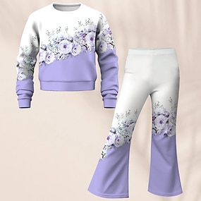 בנות תלת מימד חד-קרן סט מכנסיים עם סווטשירט ומכנסיים מתלקחים שרוול ארוך הדפסת תלת מימד אביב סתיו פעיל אופנתי יומי ילדים 3-12 שנים צווארון עגול קצר בָּחוּץ חופשה פגישה (דייט) רגיל