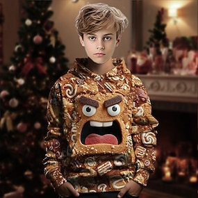 חג המולד בנים תלת מימד גראפי גברים של ג'ינג'ר קפוצ'ון שרוול ארוך אביב סתיו אופנתי סגנון רחוב ילדים 4-12 שנים עם קפוצ'ון בָּחוּץ קזו'אל יומי רגיל
