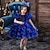 ילדים קטן בנות שמלה קשת חד-קרן חיה שמלה עם כיווץ במותן יומי חגים חופשה דפוס כחול נייבי מעל הברך שרוול ארוך יום יומי סגנון חמוד מתוק שמלות סתיו אביב רגיל 3-10 שנים