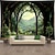 יער ירוק יפהפה ענף עץ חור מעגל נוף תליית שטיח קיר אמנות גדול שטיח קיר דקור צילום רקע שמיכת וילון בית חדר שינה סלון קישוט