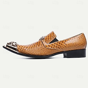 בגדי ריקוד גברים נעליים ללא שרוכים נעלי הדפסה השמלה לופרים עור עור פרה איטלקי מלא נוח מונע החלקה לואפר צהוב חום