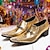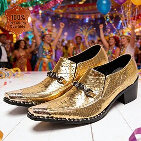 נעלי לופז לגברים בצבע זהב מטאלי עם חרטום מחודד - נעלי עור פרה זוהרות למופעי במה, מועדונים וחגיגות רשמיות