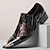 נעלי ערב שחורות מעור פטנט לגברים עם עיטור פרחוני זהוב, חרטום מחודד יוקרתי, נעליים לאירועים רשמיים