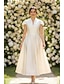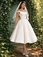 גזרת A באורך הקרסול שמלה לבנה קטנה שמלות קוקטייל שמלות חתונה שמלות למסיבת כלה שנות ה-50 מינימליסטי שמלות לבנות קטנות ללא שרוולים סירה מתחת לכתפיים אורחת חתונה סיום לימודים קבלת פנים לחתונה בסתיו סאטן