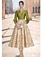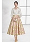 גזרת A באורך הקרסול שמלות קוקטייל שמלות מסיבה אלגנטית וינטאג' פרחוני שרוול 4\3 צווארון V מסיבת חצר חתונה כיס טפטה ג'אקרד גב בדוגמת דרפה עם הדפס פרחוני פפיון(ים) קפלים