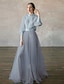 גזרת A א-סימטרי שמלת נשף עם גלימה שמלות ערב לבוש רשמי אלגנטית שרוול ארוך צווארון V חתונה רשמי כיס סאטן עם קפלים כיס