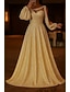 גזרת A עד הריצפה שמלות נשף שמלות ערב שמלת נשף לבוש רשמי אלגנטית שרוולים קצרים צווארון V חתונה רשמי שכמיות Lurex Fabric עם נצנוץ קפלים