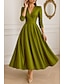 גזרת A באורך הקרסול שמלות קוקטייל אלגנטית וינטאג' שרוול 4\3 צווארון V רשמי כיס טפטה עם קפלים אסוף כיס