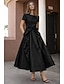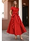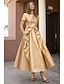 גזרת A באורך הקרסול שמלות קוקטייל אלגנטית שרוולים קצרים סירה רחב מסיבת חצר חתונה סאטן עם פפיון(ים) קפלים