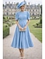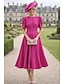 מעטפת עמוד באורך הקרסול שמלות קוקטייל שמלות מסיבה אלגנטית וינטאג' שרוולים קצרים המלכה אן רשמי קרפ מתיחה עם צעיף