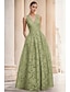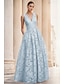 גזרת A עד הריצפה שמלות ערב שמלת נשף לבוש רשמי אלגנטית וינטאג' נוצץ שרוול ארוך צווארון V רשמי אורחת חתונה תחרה נצנצים עם הדפס פרחוני
