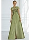 גזרת A א-סימטרי עד הריצפה שמלות ערב שמלת נשף לבוש רשמי אלגנטית עשוי משי שרוולים קצרים צווארון עגול קצר חתונה רשמי כיס סאטן גב בדוגמת דרפה עם פרח רקום קפלים