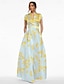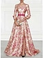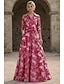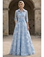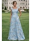 גזרת A עד הריצפה שמלות ערב אלגנטית פרחוני פַּסטֵל שרוול 4\3 צווארון מרובע חתונה רשמי ג'אקרד עם פפיון(ים) שסע