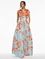 גזרת A עד הריצפה שמלות ערב שמלת נשף אלגנטית וינטאג' פרחוני חצי שרוול סירה רחב מסיבת חצר חתונה כיס סאטן עם הדפס פרחוני קפלים כיס
