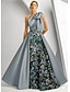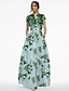 גזרת A עד הריצפה שמלות ערב לבוש רשמי אלגנטית עשוי משי שרוולים קצרים צווארון V חתונה רשמי סאטן עם הדפס פרחוני