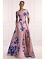גזרת A עד הריצפה שמלה פרחונית שמלות ערב אלגנטית וינטאג' פרחוני ללא שרוולים כתפיה אחת מסיבת חצר חתונה כיס סאטן ג'אקרד עם הדפס פרחוני פרח רקום פפיון(ים)