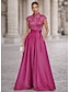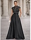 גזרת A עד הריצפה שמלות ערב אלגנטית נוצץ מדבקות עם נצנצים שרוולים קצרים צווארון גבוה מסיבת ערב חתונה כיס סאטן טול עם קפלים חרוזים רקומים