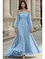 גזרת A עד הריצפה שמלות ערב שמלות אורח כלה לבוש רשמי אלגנטית שרוול ארוך סירה מתחת לכתפיים חתונה רשמי שיפון עם קפלים אסוף